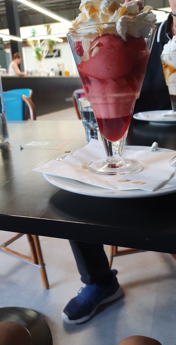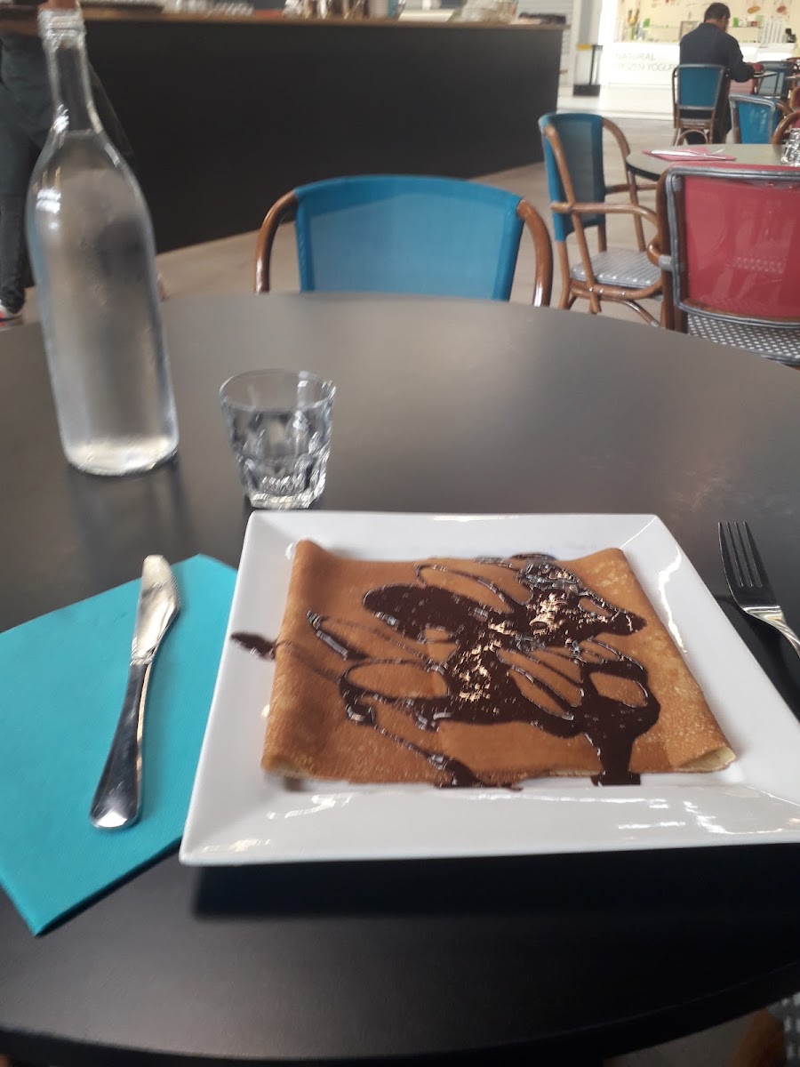 Espace de restauration au design moderne, trente ouvert, pas mal. Le service est top, tout souriant, et on réponds avec le sourire aux petites demandes du type verre avec glaçons et tranche de citron… Nous avons pris pizza et galette, les deux étaient bonnes.