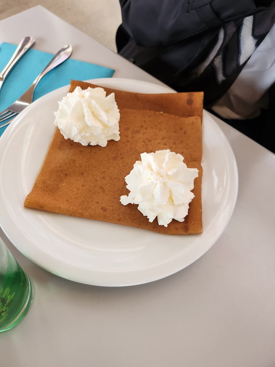 [crêperie uniquement] Bonjour, j'ai hésité entre 3 et 4 étoiles. J'ai mis 4 par rapport au prix abordable. La qualité des crêpes est juste correcte et les portions sont un peu petites. Autre point améliorable : Pour moi, votre crêpe dessert au chocolat noir n'en est pas composée. La femme ne l'a pas mangé, mais notre ado la finie. Bref, pas cher et bien situé, mais pas top.